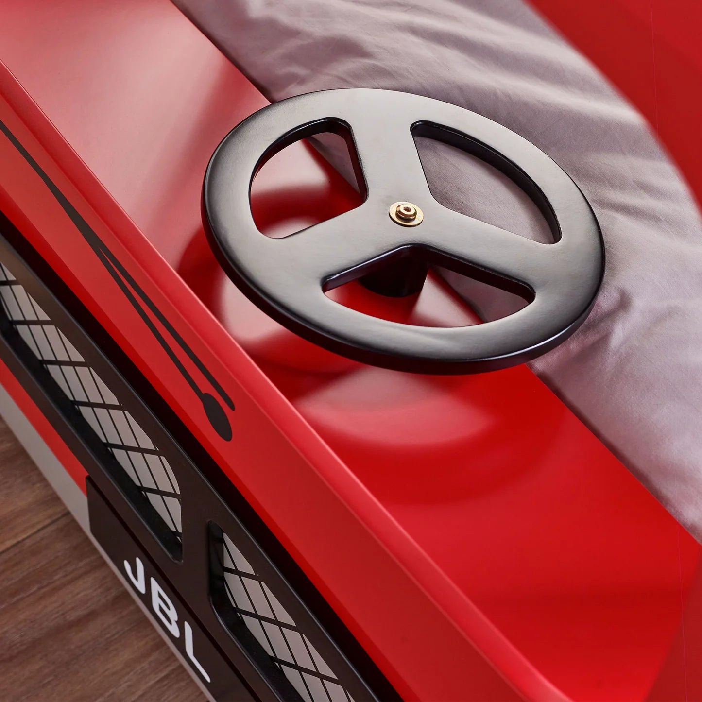 The London Bus Bunk Bed is the perfect sleeping solution for your little one. Made from a combination of lacquered particleboard and powder coated steel, this bed is both durable and stylish. The bed is designed to accept two standard UK single mattresses (90cm x 190cm), providing your little one with a comfortable and secure sleep.