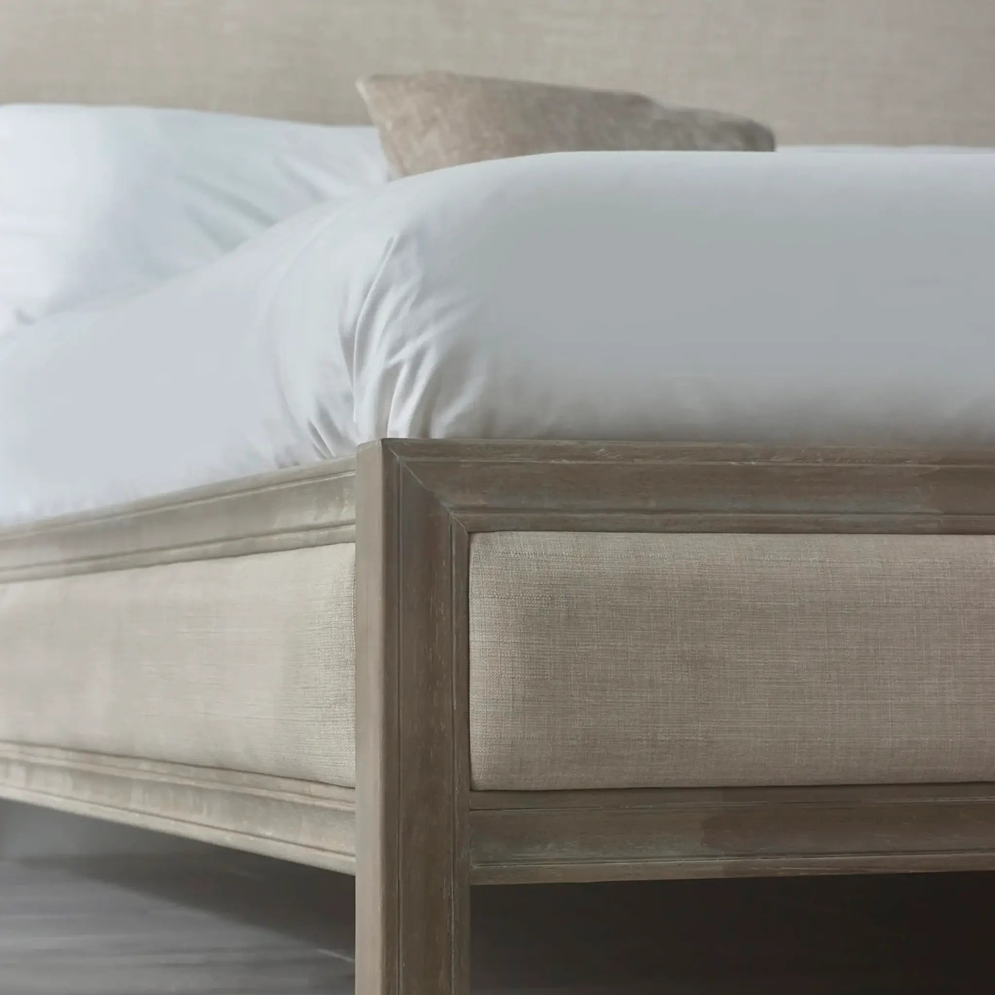 Elevate your bedroom with the Lucie bed, a beautifully tailored piece that combines modern elegance with timeless appeal. Upholstered in a soft ivory fabric, this panel bed brings warmth and sophistication to your space, creating a calm and inviting atmosphere.