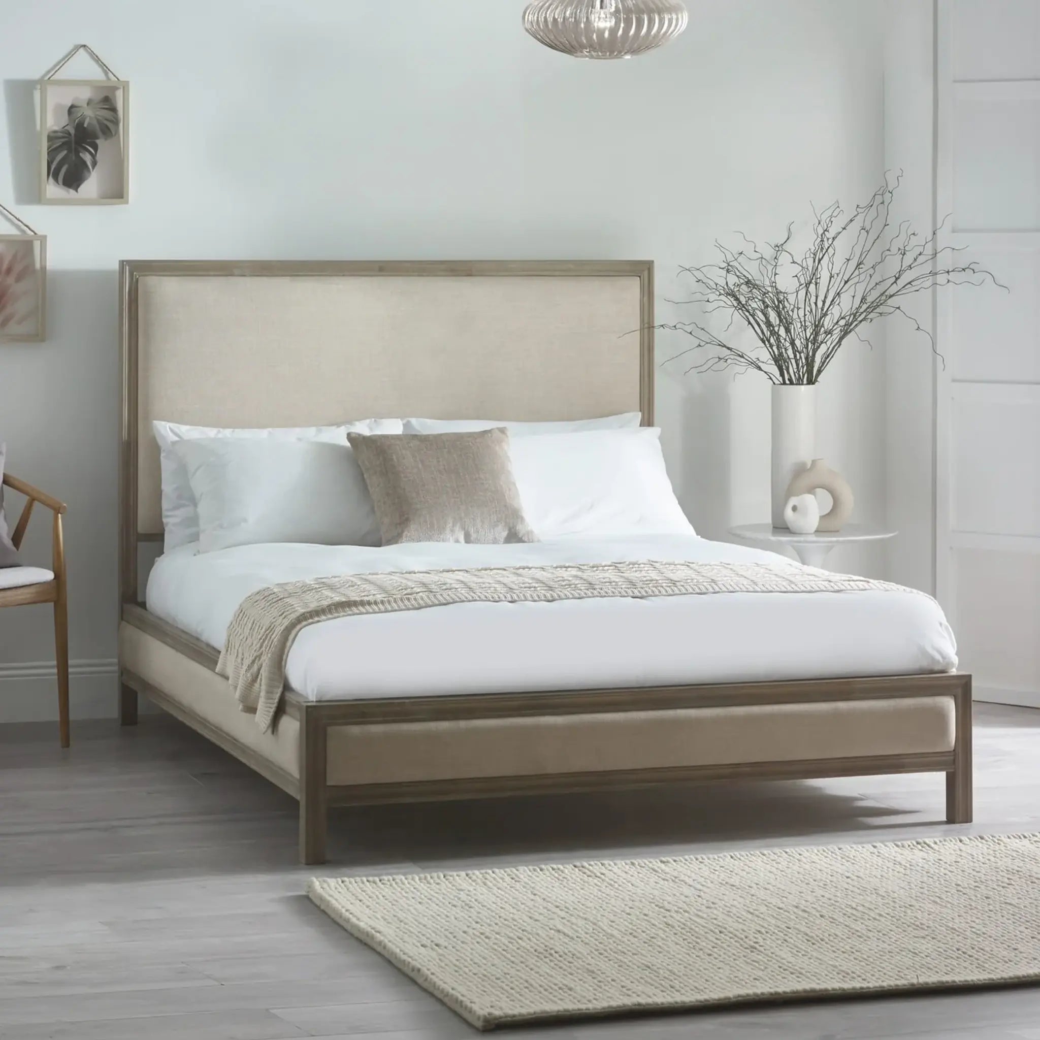 The tall headboard forms a striking focal point, adding height and refinement, while the carefully detailed wooden welt border enhances the bed’s tailored finish. Designed to feel both elegant and comfortable, the Lucie bed offers a stylish foundation for a restful night’s sleep, making it a standout choice for a refined bedroom setting.