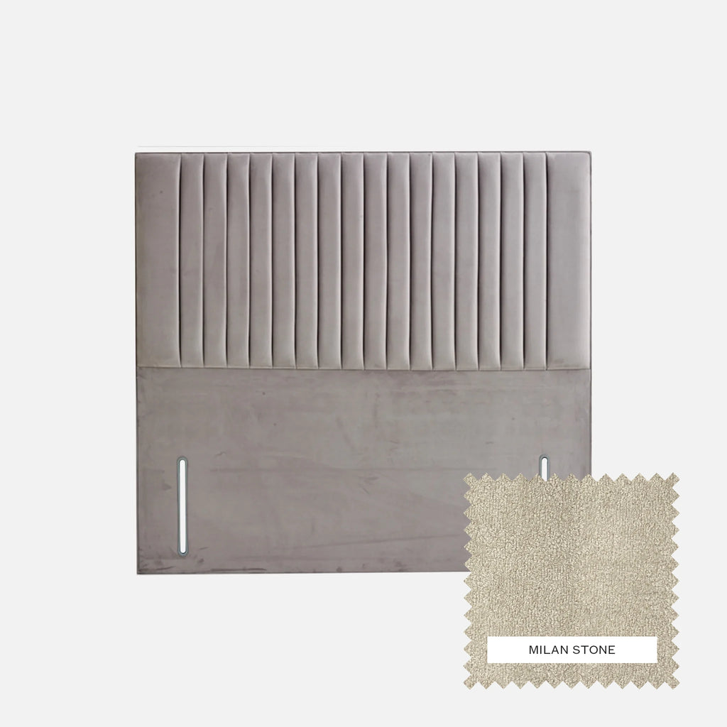 The Nero features vertical lines running across the entire width of the headboard, creating a strong, architectural look with a clean, symmetrical finish. Its linear design adds depth and texture, making it a perfect fit for contemporary interiors that favour simplicity with character.