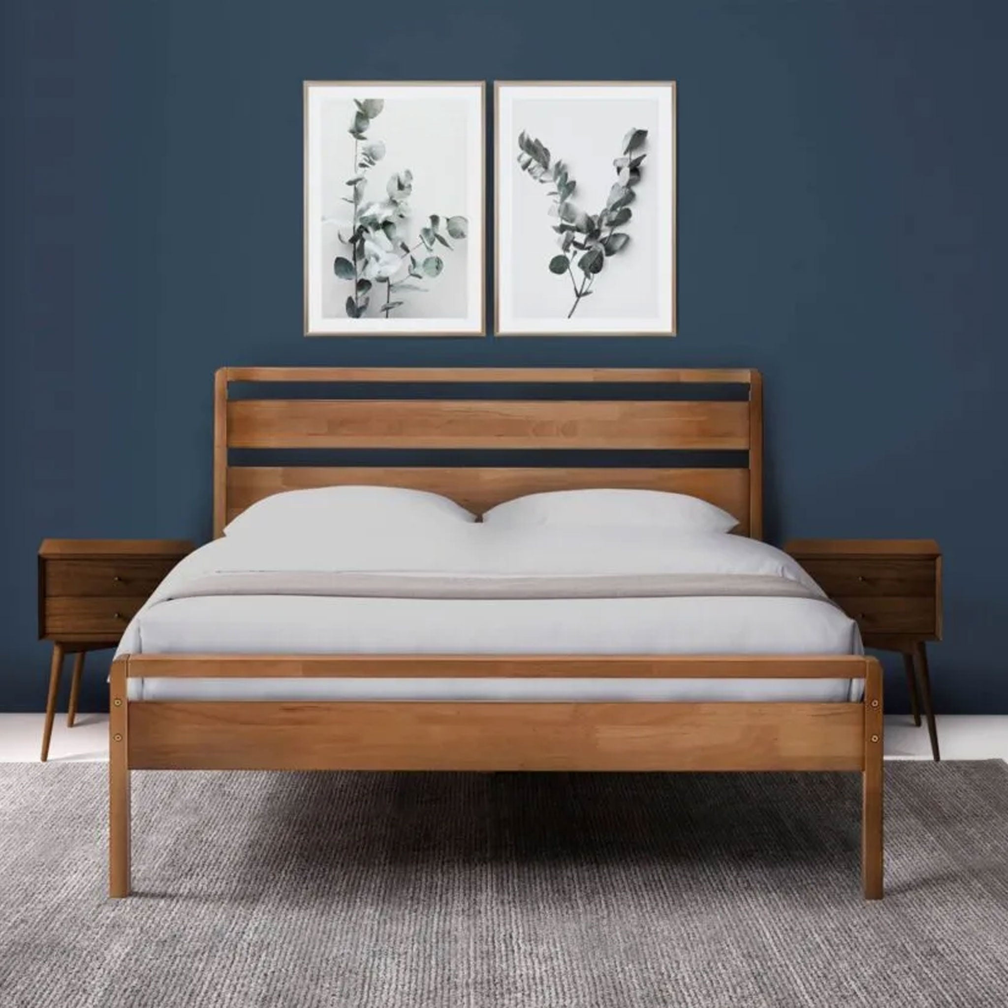 - Stylish slatted wooden headboard creates a refined focal point
